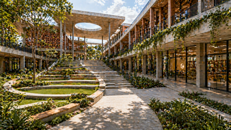 Material Selection: Using locally-sourced, low-embodied-carbon materials reduces both environmental impact and costs. Regional materials also connect schools to their local context, fostering community pride.