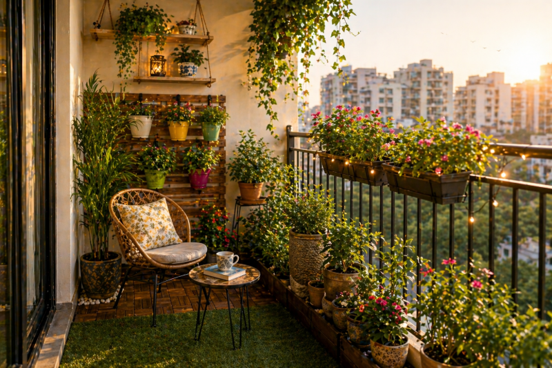 Transform your apartment balcony into a lush garden. Expert tips for vertical gardening, plant selection & space optimization in Indian cities.