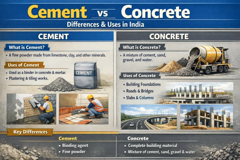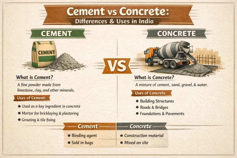 Learn the key differences between cement and concrete in Indian construction. Understand their properties, uses, and how to choose the right material.