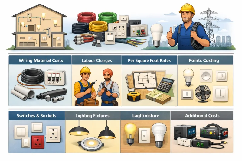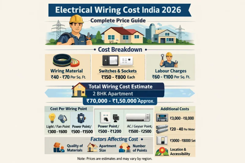Electrical wiring costs in India for 2026 vary widely based on project type, location, material quality, and complexity. Residential projects typically range from ₹35-125 per sq. ft., while commercial and industrial projects are significantly higher. Understanding these cost factors helps in accurate budgeting and project planning.