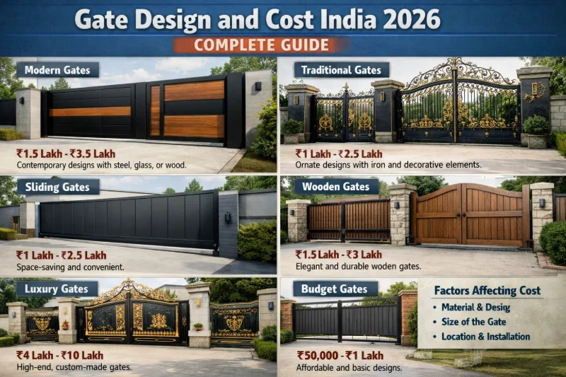 Explore modern gate designs, trends, and 2026 costs in India. Residential & commercial options from traditional to automated systems.