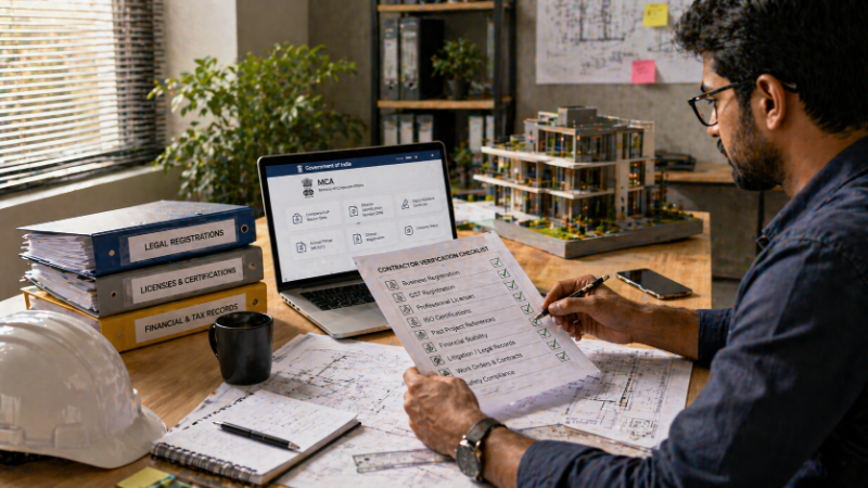 Learn how to verify contractor credentials in India. Essential steps to check registration, licenses, and qualifications for construction projects.