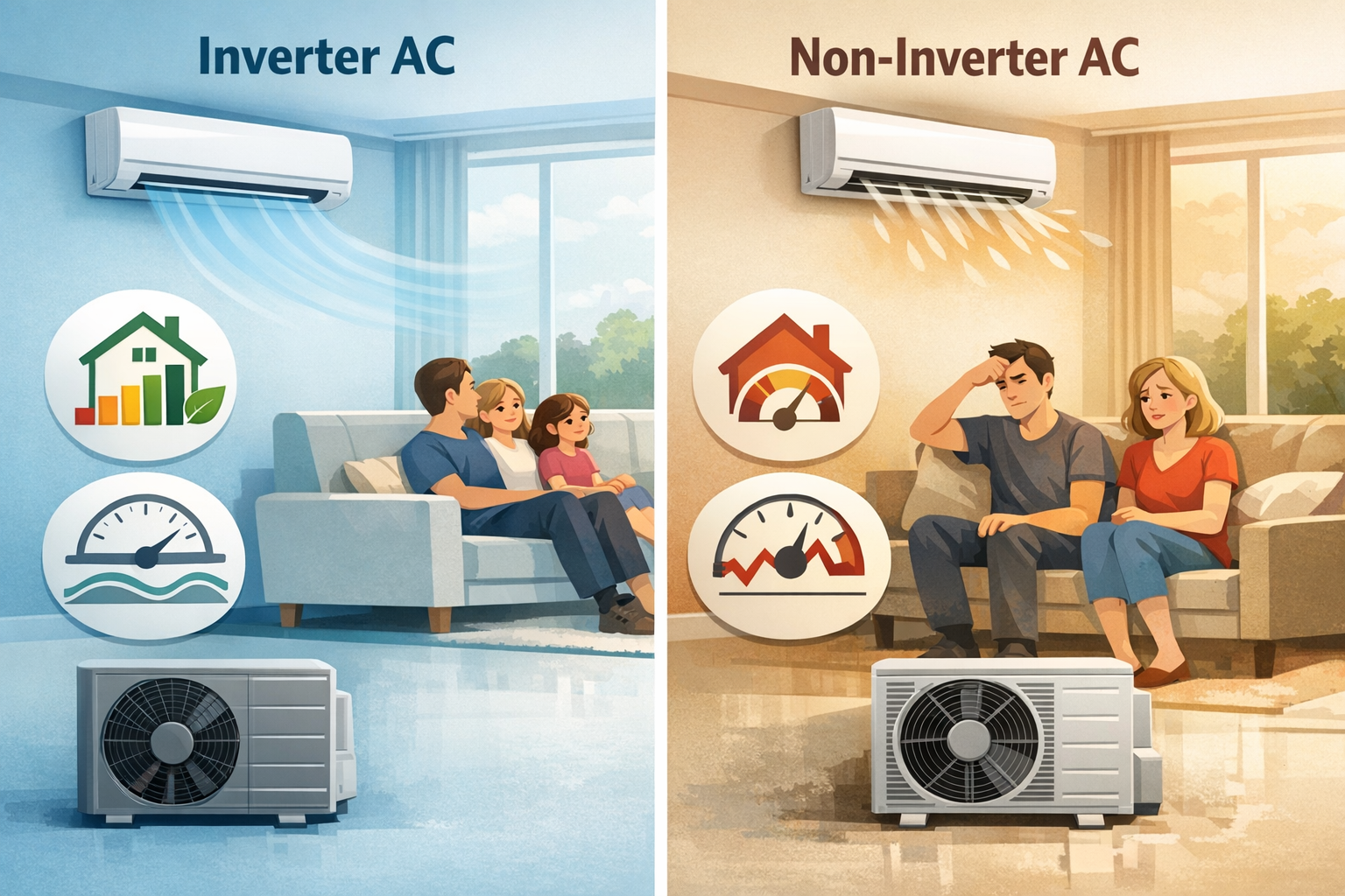Compare inverter and non-inverter AC units for new homes. Learn about efficiency, costs, and which technology saves more on electricity bills.