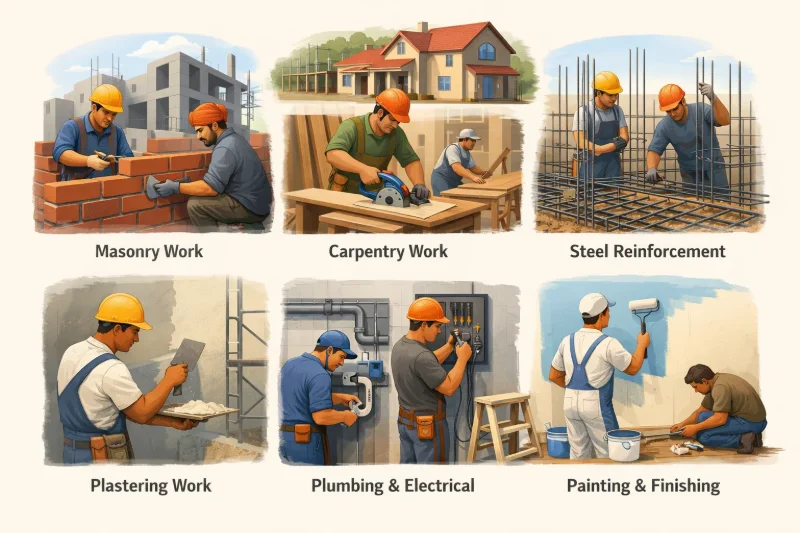 Workers with specialized skills—such as RCC (Reinforced Cement Concrete) specialists, facade workers, or those trained in modern construction techniques—command higher wages. Their expertise directly impacts project quality and timeline.