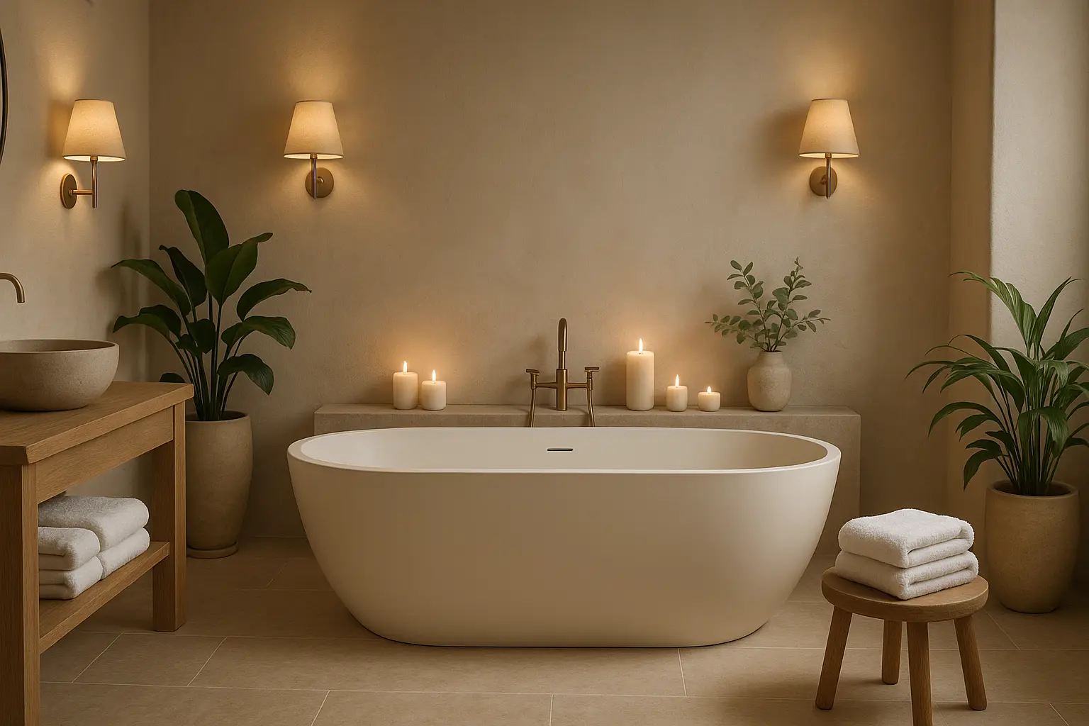Warm Neutrals with Gold Accents: Beige, cream, or soft taupe walls with brass or gold fixtures