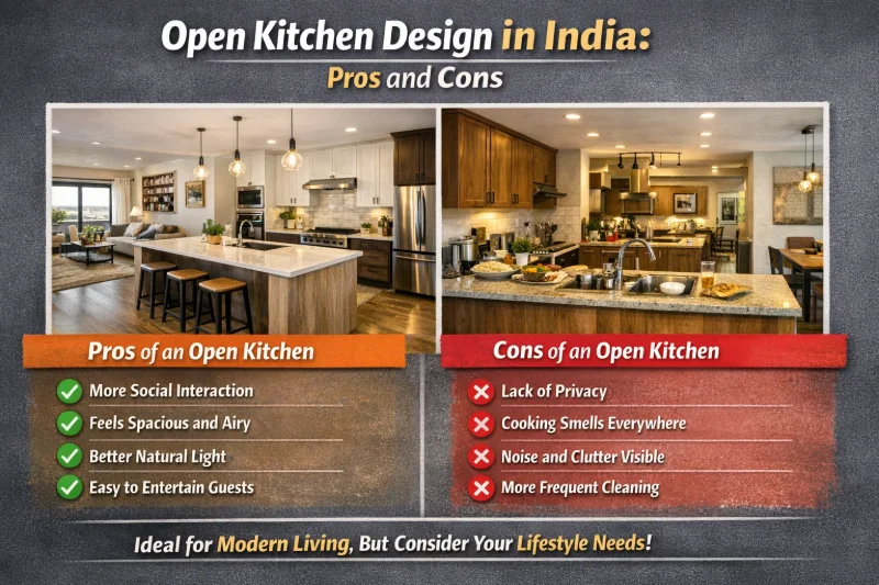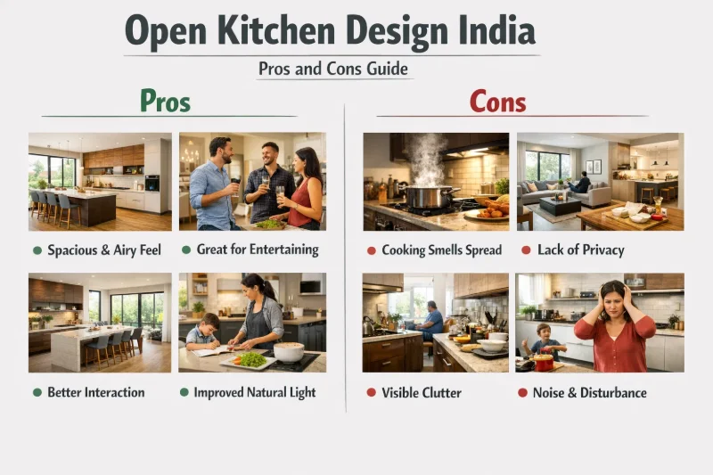 Explore open kitchen design benefits and drawbacks for Indian homes. Learn if this modern layout suits your space and lifestyle.