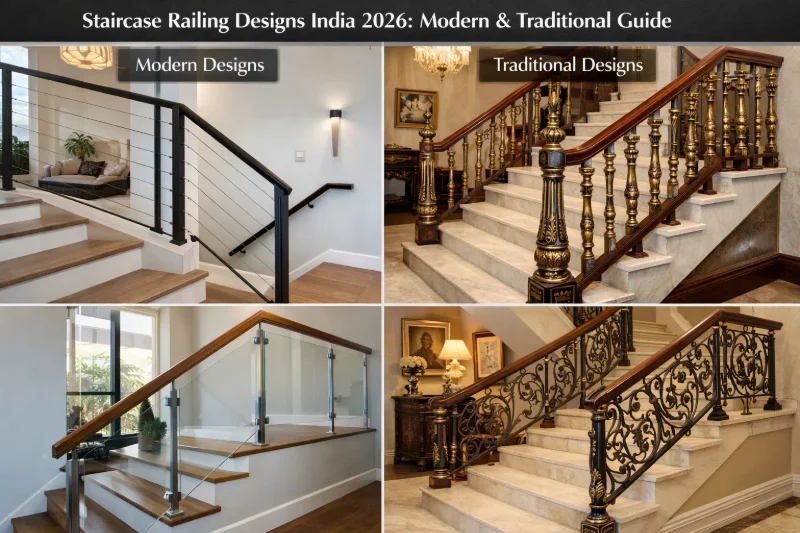 Explore modern and traditional staircase railing designs in India 2026. Trends, materials, costs, and innovations for homes and commercial spaces.