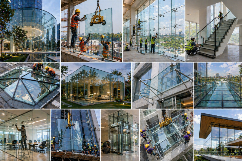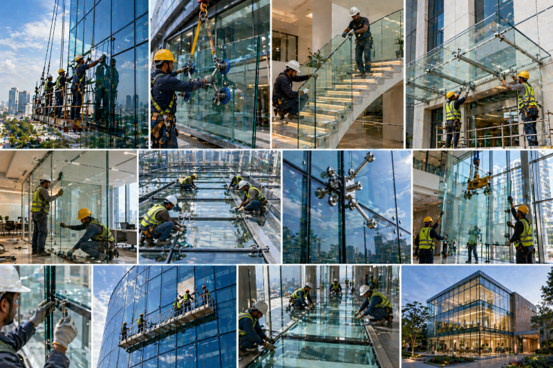 Structural glass installation requires specialized expertise and should only be undertaken by certified professionals. The installation process includes: